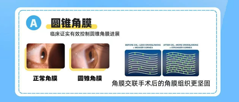 治疗圆锥角膜:这是该技术最主要的应用。圆锥角膜是一种角膜中央变薄、向前呈圆锥状突起的疾病,会导致视力急剧下降。角膜交联术可以有效延缓甚至停止圆锥角膜的进展,避免患者发展到需要进行角膜移植的程度。