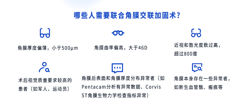屈光手术的“黄金搭档”:在进行近视激光手术(如全飞秒、半飞秒)后,角膜会变薄。对于角膜厚度偏薄、曲率较高或有圆锥角膜风险的患者,联合进行角膜交联术可以“加固”角膜,降低术后角膜扩张的风险,提升手术的安全性。
